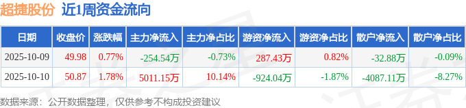 资金流向数据方面,本周超捷股份主力资金合计净流入4756.61万元,游资资金合计净流出636.62万元,散户资金合计净流出4119.99万元。本周资金流向一览见下表: