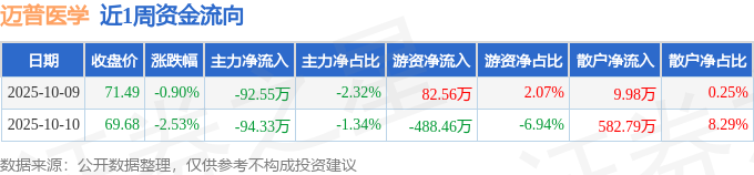 资金流向数据方面,本周迈普医学主力资金合计净流出186.88万元,游资资金合计净流出405.9万元,散户资金合计净流入592.77万元。本周资金流向一览见下表: