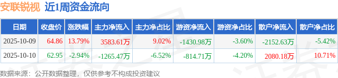 资金流向数据方面,本周安联锐视主力资金合计净流入2318.14万元,游资资金合计净流出2245.69万元,散户资金合计净流出72.45万元。本周资金流向一览见下表: