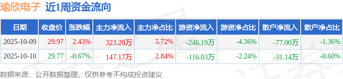 资金流向数据方面,本周瑜欣电子主力资金合计净流入470.36万元,游资资金合计净流出362.23万元,散户资金合计净流出108.14万元。本周资金流向一览见下表: