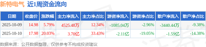 资金流向数据方面,本周新特电气主力资金合计净流入4.15亿元,游资资金合计净流出2.22亿元,散户资金合计净流出1.94亿元。本周资金流向一览见下表: