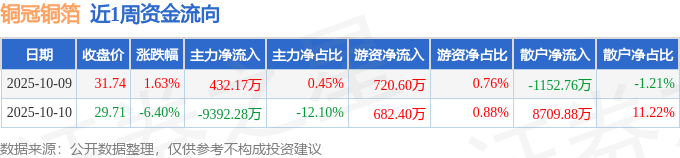 沪深股通持股方面,截止2025年10月10日收盘,铜冠铜箔深股通持股数为125.76万股,占流通股比为55.0%。