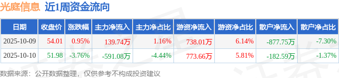 资金流向数据方面,本周光庭信息主力资金合计净流出451.33万元,游资资金合计净流入1511.67万元,散户资金合计净流出1060.34万元。本周资金流向一览见下表: