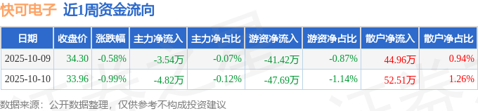 资金流向数据方面,本周快可电子主力资金合计净流出8.36万元,游资资金合计净流出89.11万元,散户资金合计净流入97.47万元。本周资金流向一览见下表: