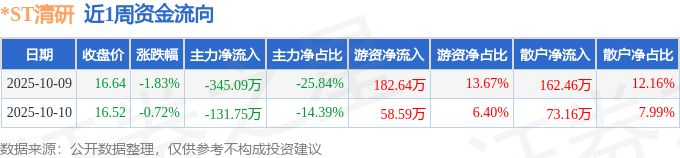资金流向数据方面,本周*ST清研主力资金合计净流出476.85万元,游资资金合计净流入241.23万元,散户资金合计净流入235.62万元。本周资金流向一览见下表: