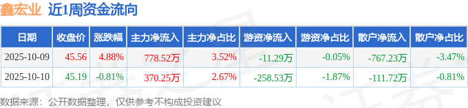 资金流向数据方面,本周鑫宏业主力资金合计净流入1148.77万元,游资资金合计净流出269.82万元,散户资金合计净流出878.95万元。本周资金流向一览见下表: