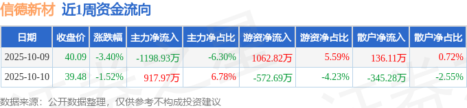 资金流向数据方面,本周信德新材主力资金合计净流出280.97万元,游资资金合计净流入490.14万元,散户资金合计净流出209.17万元。本周资金流向一览见下表: