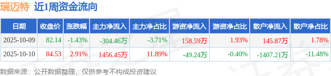 资金流向数据方面,本周瑞迈特主力资金合计净流入1151.99万元,游资资金合计净流入109.35万元,散户资金合计净流出1261.34万元。本周资金流向一览见下表: