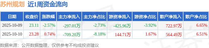 资金流向数据方面,本周苏州规划主力资金合计净流出1006.21万元,游资资金合计净流出281.25万元,散户资金合计净流入1287.46万元。本周资金流向一览见下表: