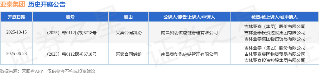 证券之星消息,根据天眼查APP显示,近日公布了一则吉林亚泰(集团)股份有限公司作为被告/被上诉人的开庭公告,详细内容如下:
