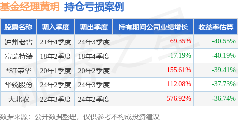 黄玥管理的前海开源MSCI中国A股消费A基金在21年4季度买入泸州老窖,在持有2年又3个季度后在24年3季度卖出。持有期间的估算收益率为-40.55%,持有期间泸州老窖在2021年到2024年的年报归属净利润增幅达69.35%。
