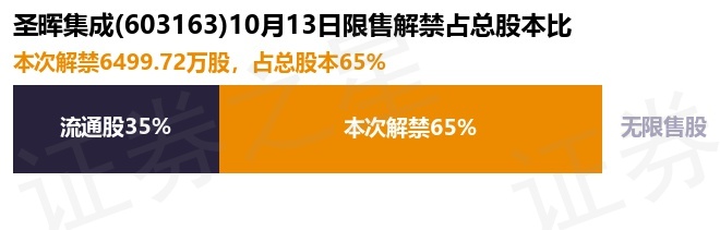 证券之星消息,根据市场公开信息整理,圣晖集成(603163)于10月13日将有6499.73万股限售股份解禁,为公司首发原股东限售股份,占公司总股本65.0%。(本次数据根据历史公告整理得出,实际情况以上市公司最新公告为准)本次解禁后,公司已无限售股份。具体如下图所示: