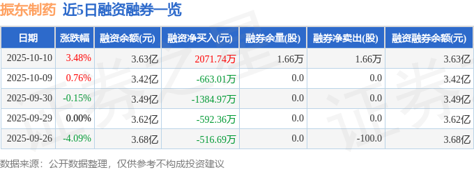 证券之星消息,截至2025年10月10日收盘,振东制药(300158)报收于6.84元,上涨3.48%,换手率6.91%,成交量69.42万手,成交额4.73亿元。