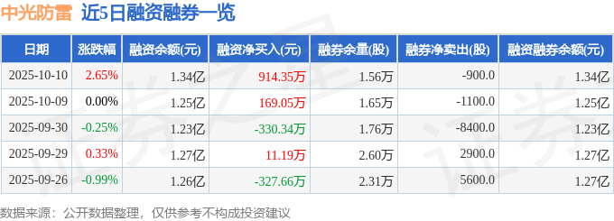 中光防雷融资融券信息显示,融资方面,当日融资买入2226.49万元,融资偿还1312.14万元,融资净买入914.35万元。融券方面,融券卖出0.0股,融券偿还900.0股,融券余量1.56万股,融券余额19.33万元。融资融券余额1.34亿元。
