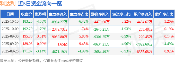10月10日的资金流向数据方面,主力资金净流出8934.27万元,占总成交额6.42%,游资资金净流入4479.6万元,占总成交额3.22%,散户资金净流入4454.67万元,占总成交额3.2%。