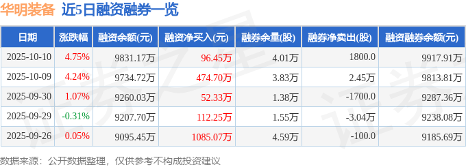 华明装备融资融券信息显示,融资方面,当日融资买入2736.76万元,融资偿还2640.31万元,融资净买入96.45万元,连续3日净买入累计623.47万元。融券方面,融券卖出4300.0股,融券偿还2500.0股,融券余量4.01万股,融券余额86.74万元。融资融券余额9917.91万元。
