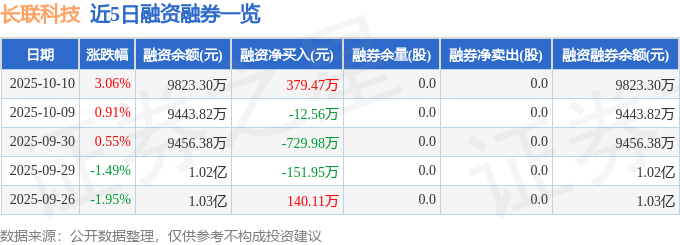 长联科技融资融券信息显示,融资方面,当日融资买入771.29万元,融资偿还391.82万元,融资净买入379.47万元。融券方面,融券卖出0.0股,融券偿还0.0股,融券余量0.0股,融券余额0.0万元。融资融券余额9823.3万元。