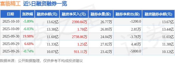 富临精工融资融券信息显示,融资方面,当日融资买入3.35亿元,融资偿还3.11亿元,融资净买入2390.04万元,连续3日净买入累计2.29亿元。融券方面,融券卖出1.77万股,融券偿还1.89万股,融券余量26.77万股,融券余额526.03万元。融资融券余额13.67亿元。