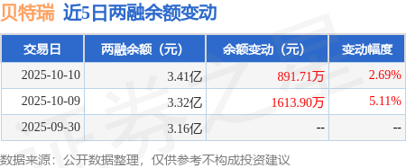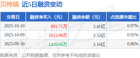 证券之星消息,10月10日,贝特瑞(920185)融资买入4619.36万元,融资偿还3727.65万元,融资净买入891.71万元,融资余额3.41亿元。