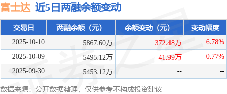 证券之星消息,10月10日,富士达(920640)融资买入806.87万元,融资偿还434.38万元,融资净买入372.48万元,融资余额5867.6万元。