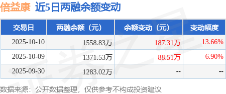 证券之星消息,10月10日,倍益康(920199)融资买入390.89万元,融资偿还203.58万元,融资净买入187.31万元,融资余额1558.83万元。
