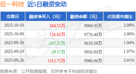 证券之星消息,10月10日,巨一科技(688162)融资买入1160.33万元,融资偿还975.79万元,融资净买入184.55万元,融资余额9960.95万元。