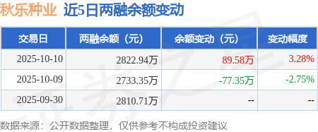 证券之星消息,10月10日,秋乐种业(920087)融资买入301.78万元,融资偿还212.19万元,融资净买入89.58万元,融资余额2822.94万元。