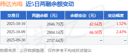 证券之星消息,10月10日,纬达光电(920001)融资买入124.89万元,融资偿还82.25万元,融资净买入42.64万元,融资余额2846.79万元,近3个交易日已连续净买入累计162.08万元。