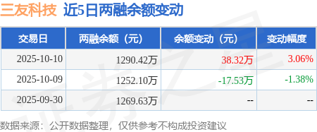 证券之星消息,10月10日,三友科技(920475)融资买入55.21万元,融资偿还16.89万元,融资净买入38.32万元,融资余额1290.42万元。