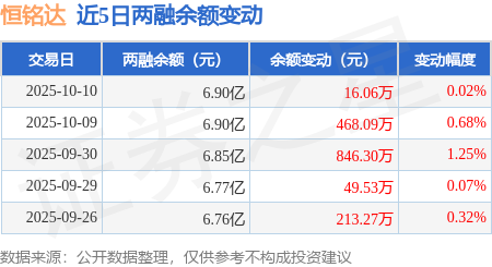 证券之星消息,10月10日,恒铭达(002947)融资买入7466.68万元,融资偿还7431.37万元,融资净买入35.3万元,融资余额6.9亿元,近3个交易日已连续净买入累计1398.81万元,近20个交易日中有12个交易日出现融资净买入。