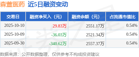 证券之星消息,10月10日,森萱医药(920946)融资买入154.05万元,融资偿还124.21万元,融资净买入29.83万元,融资余额2551.17万元。