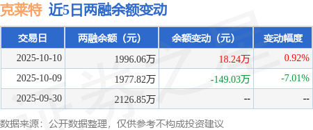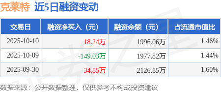 证券之星消息,10月10日,克莱特(920689)融资买入83.94万元,融资偿还65.7万元,融资净买入18.24万元,融资余额1996.06万元。