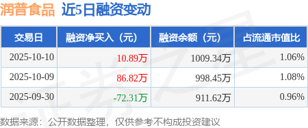 证券之星消息,10月10日,润普食品(920422)融资买入117.98万元,融资偿还107.09万元,融资净买入10.89万元,融资余额1009.34万元。