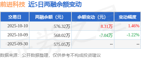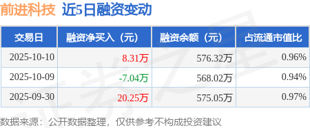 证券之星消息,10月10日,前进科技(920679)融资买入17.23万元,融资偿还8.92万元,融资净买入8.31万元,融资余额576.32万元。