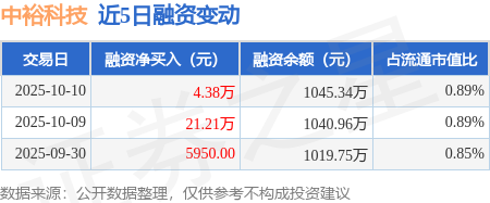 证券之星消息,10月10日,中裕科技(920694)融资买入41.17万元,融资偿还36.79万元,融资净买入4.38万元,融资余额1045.34万元,近3个交易日已连续净买入累计26.19万元。