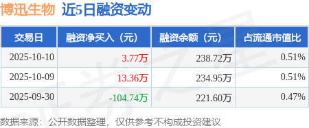 证券之星消息,10月10日,博迅生物(920504)融资买入20.4万元,融资偿还16.63万元,融资净买入3.77万元,融资余额238.72万元。