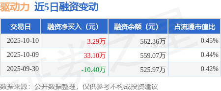 证券之星消息,10月10日,驱动力(920275)融资买入16.48万元,融资偿还13.19万元,融资净买入3.29万元,融资余额562.36万元。