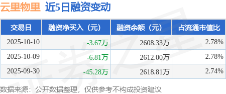 证券之星消息,10月10日,云里物里(920374)融资买入38.08万元,融资偿还41.75万元,融资净卖出3.67万元,融资余额2608.33万元。