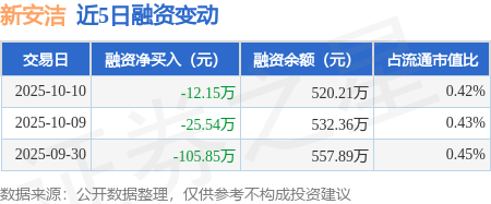 证券之星消息,10月10日,新安洁(920370)融资买入14.41万元,融资偿还26.56万元,融资净卖出12.15万元,融资余额520.21万元。