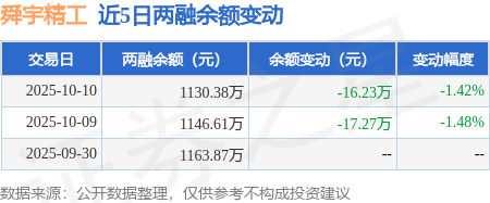 证券之星消息,10月10日,舜宇精工(920906)融资买入144.75万元,融资偿还160.98万元,融资净卖出16.23万元,融资余额1130.38万元。