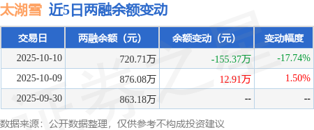 证券之星消息,10月10日,太湖雪(920262)融资买入142.56万元,融资偿还297.93万元,融资净卖出155.37万元,融资余额720.71万元。