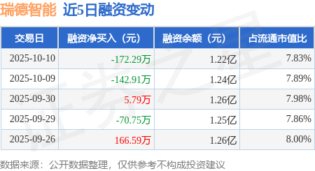 证券之星消息,10月10日,瑞德智能(301135)融资买入792.42万元,融资偿还964.71万元,融资净卖出172.29万元,融资余额1.22亿元。