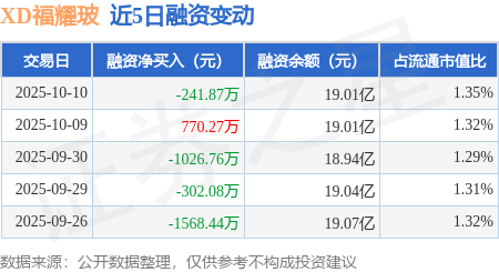 证券之星消息,10月10日,XD福耀玻(600660)融资买入6279.01万元,融资偿还6520.88万元,融资净卖出241.87万元,融资余额19.01亿元。