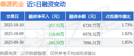 证券之星消息,10月10日,德源药业(920735)融资买入212.99万元,融资偿还470.54万元,融资净卖出257.55万元,融资余额6720.77万元。