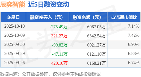 证券之星消息,10月10日,辰奕智能(301578)融资买入499.41万元,融资偿还774.9万元,融资净卖出275.49万元,融资余额6067.05万元。