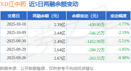 证券之星消息,10月10日,XD江中药(600750)融资买入1060.38万元,融资偿还1469.87万元,融资净卖出409.49万元,融资余额2.39亿元。