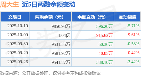 证券之星消息,10月10日,周大生(002867)融资买入522.25万元,融资偿还1117.61万元,融资净卖出595.36万元,融资余额9798.78万元。