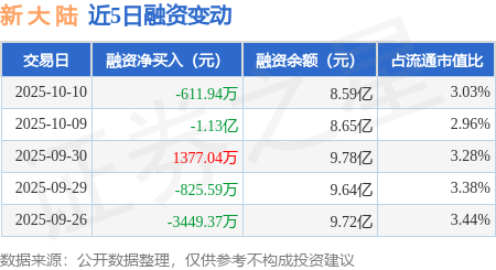 证券之星消息,10月10日,新 大 陆(000997)融资买入5471.07万元,融资偿还6083.01万元,融资净卖出611.94万元,融资余额8.59亿元。