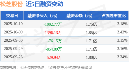 证券之星消息,10月10日,松芝股份(002454)融资买入863.89万元,融资偿还1866.66万元,融资净卖出1002.77万元,融资余额1.75亿元。