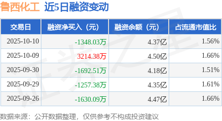 证券之星消息,10月10日,鲁西化工(000830)融资买入3877.03万元,融资偿还5225.06万元,融资净卖出1348.03万元,融资余额4.37亿元。